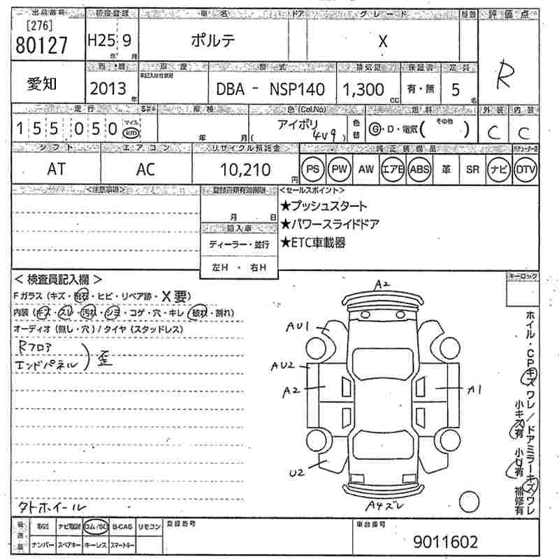 TOYOTA PORTE 2013 г., лот № 80127