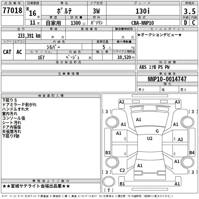 | 130I | CBA-NNP10 | 2NZ-FE | FF | 4AT | 1298cc | 87ps(64kW)/6000rpm | AИ-92 | 1 386 000 |