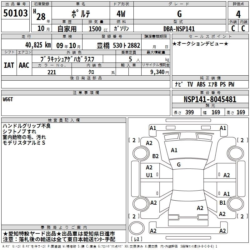 | Y | DBA-NSP141 | 2NR-FKE | FF | CVT | 1496cc | 109ps(80kW)/6000rpm | AИ-92 | 1 839 240 | |