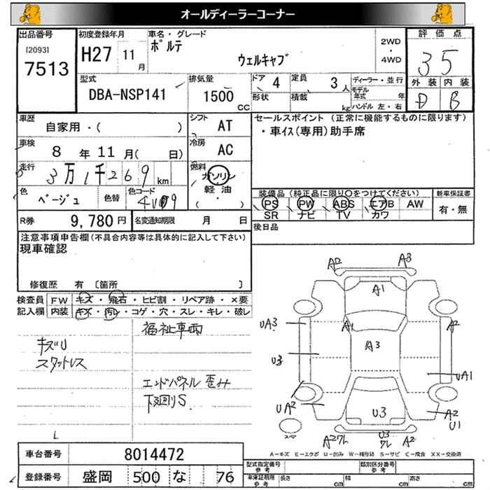| F | DBA-NCP145 | 1NZ-FE | Full-time 4WD | CVT | 1496cc | 103ps(76kW)/6000rpm | AИ-92 | 1 909 637 | |