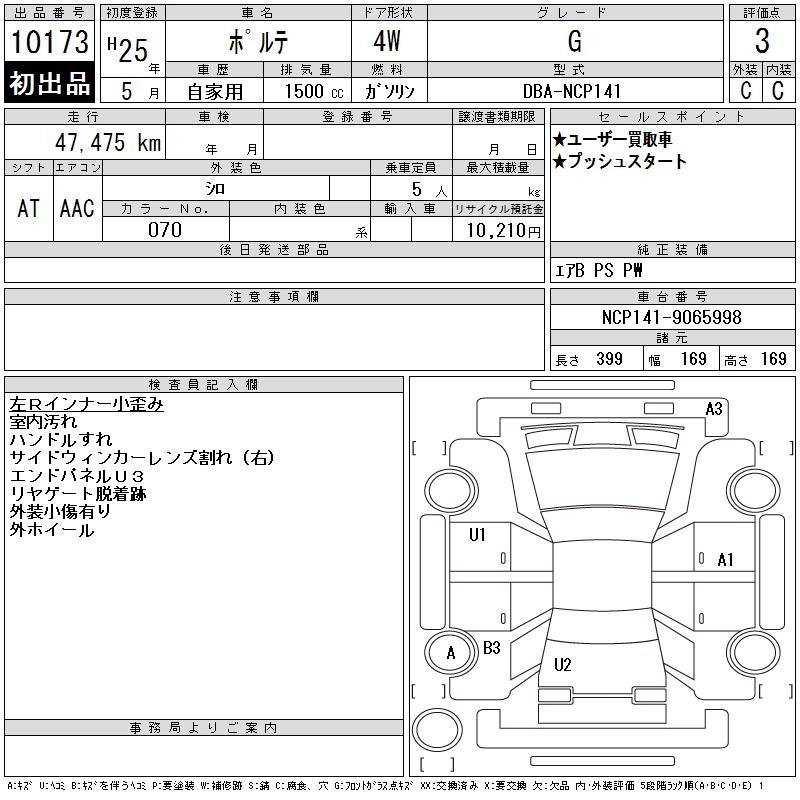 TOYOTA PORTE 2013 г., лот № 10173
