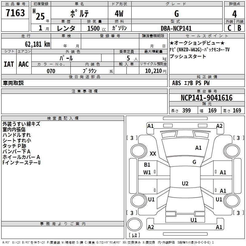 TOYOTA PORTE 2013 г., лот № 7163