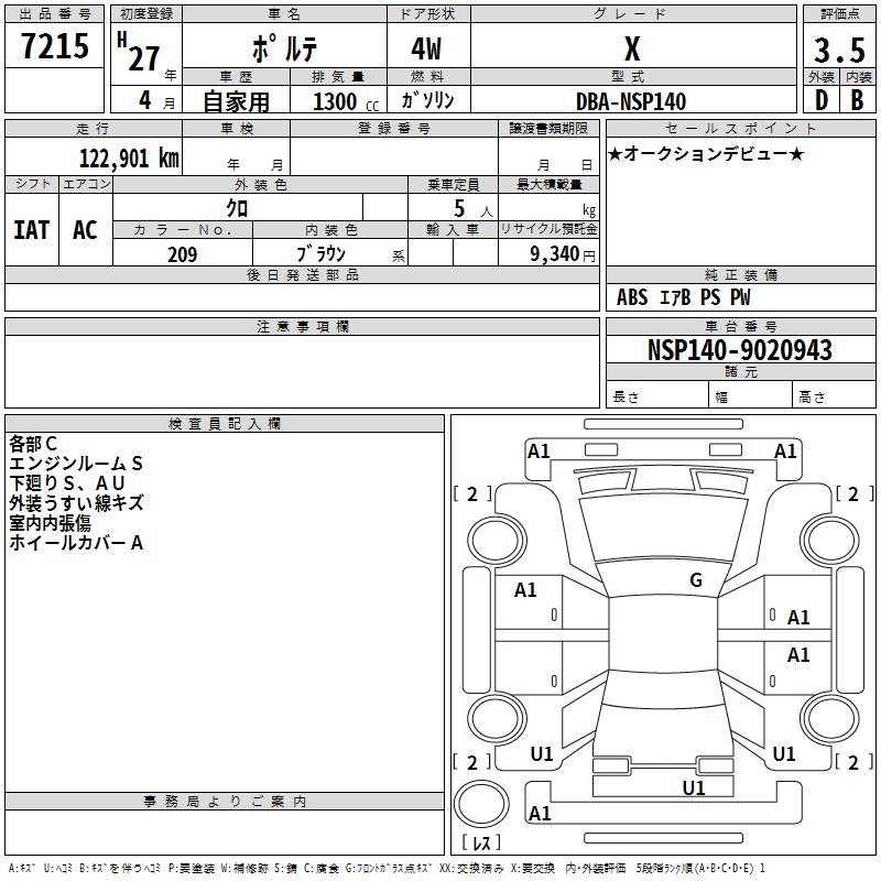 Год выпуска2015 Пробег 123 000 км КузовNSP140 КомплектацияX