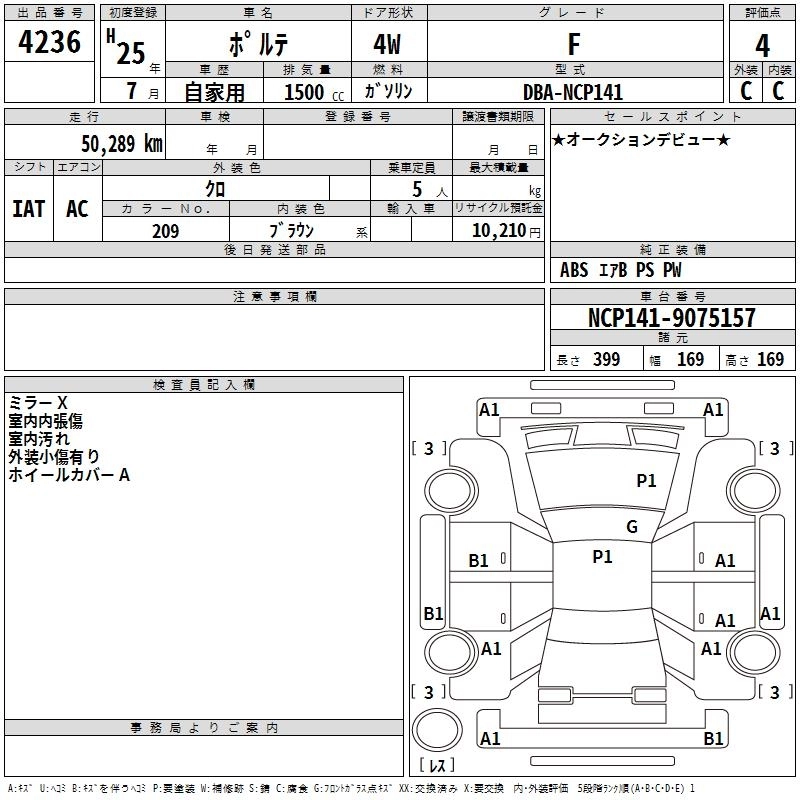 TOYOTA PORTE 2013 г., лот № 4236