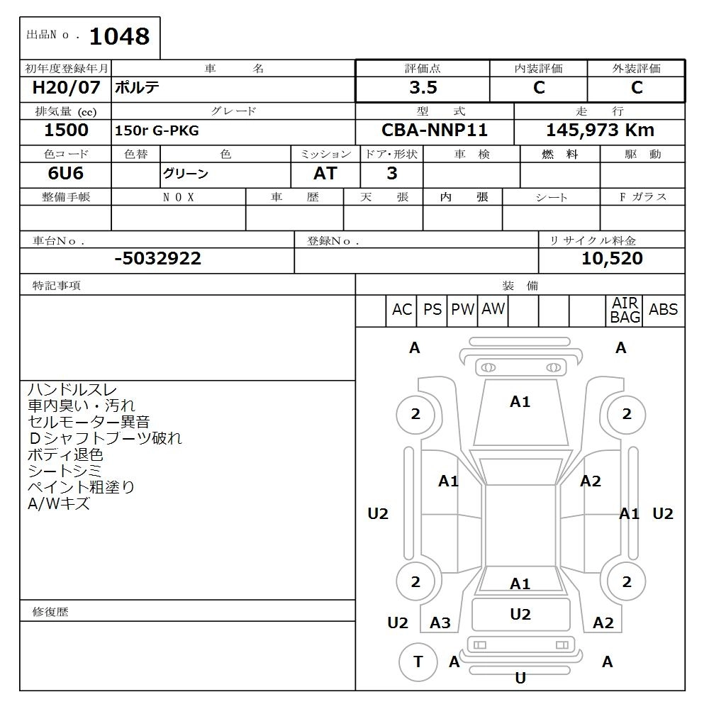 TOYOTA PORTE 2008 г., лот № 1048
