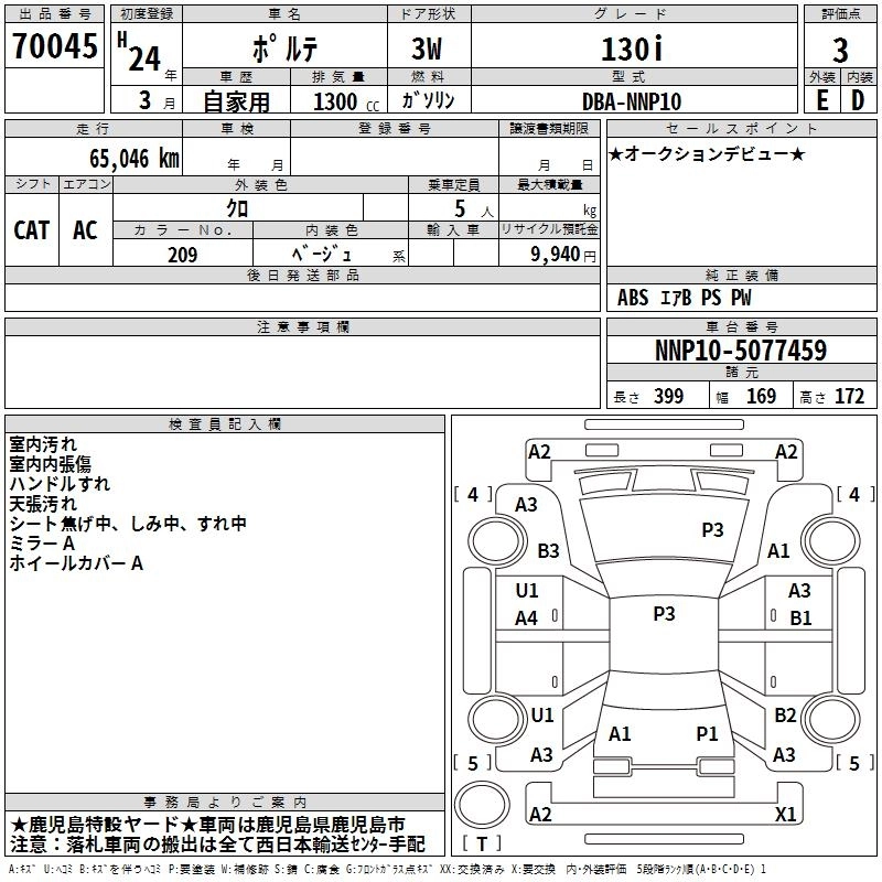| X | DBA-NCP141 | 1NZ-FE | FF | CVT | 1496cc | 109ps(80kW)/6000rpm | AИ-92 | 1 590 000 | |