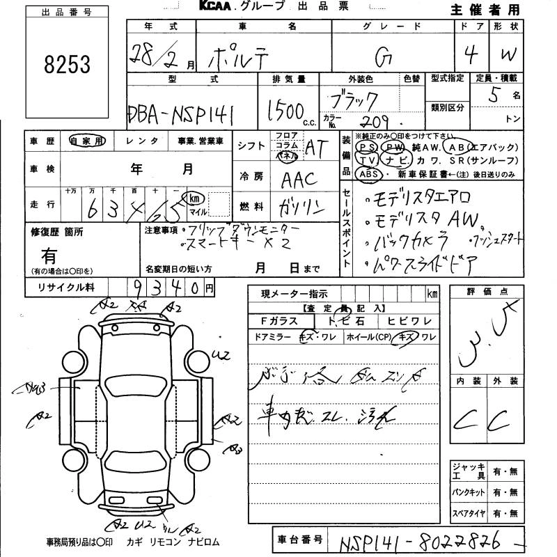 | Y | DBA-NSP141 | 2NR-FKE | FF | CVT | 1496cc | 109ps(80kW)/6000rpm | AИ-92 | 1 839 240 | |