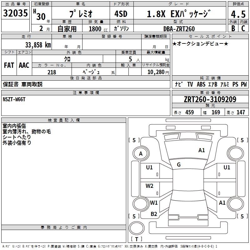 TOYOTA PREMIO 2018 г., лот № 32035