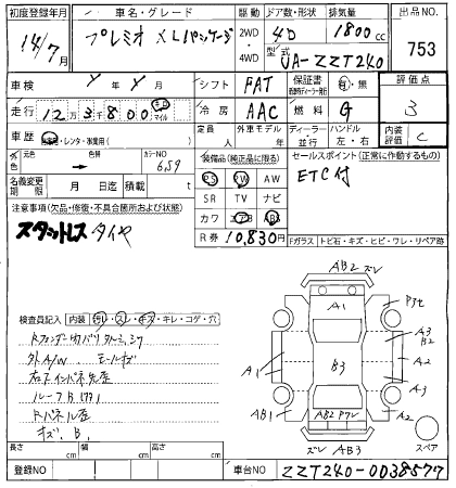 | X STANDARD PACKAGE | UA-ZZT245 | 1ZZ-FE | Full-time 4WD | 4AT | 1794cc | 125ps(92kW)/6000rpm | AИ-92 | 1 895 000 | |