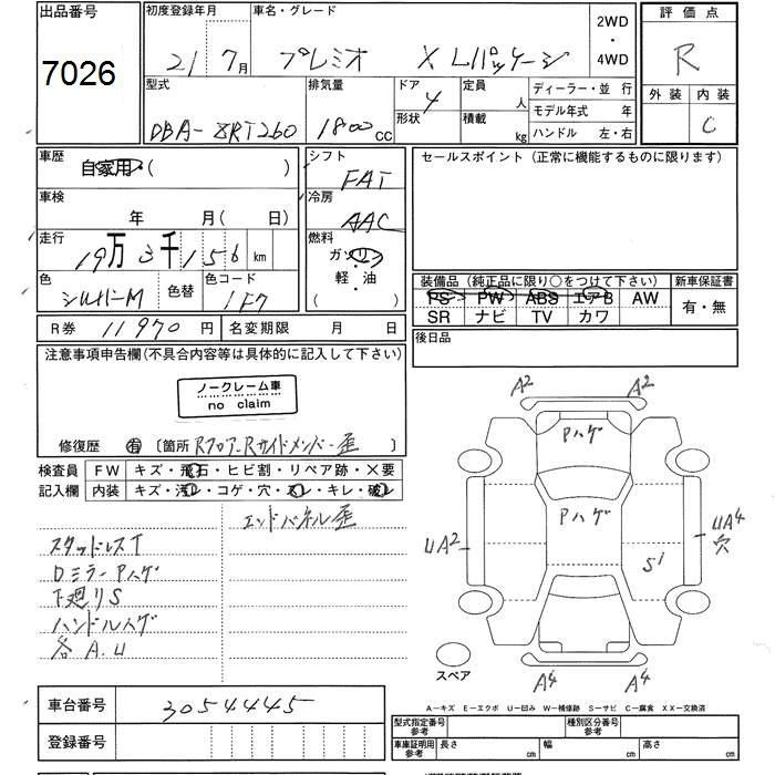 Комплектации для TOYOTA PREMIO
