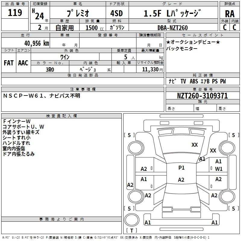 | 1.5F L PACKAGE | DBA-NZT260 | 1NZ-FE | FF | CVT | 1496cc | 109ps(80kW)/6000rpm | AИ-92 | 1 820 000 | |
