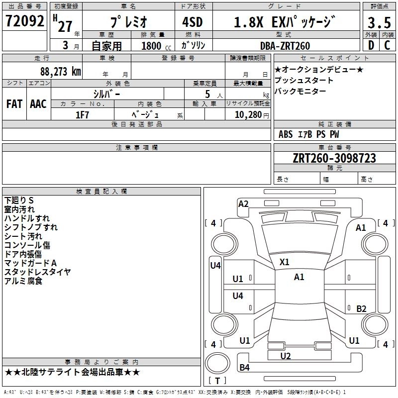 TOYOTA PREMIO 2015 г., лот № 72092