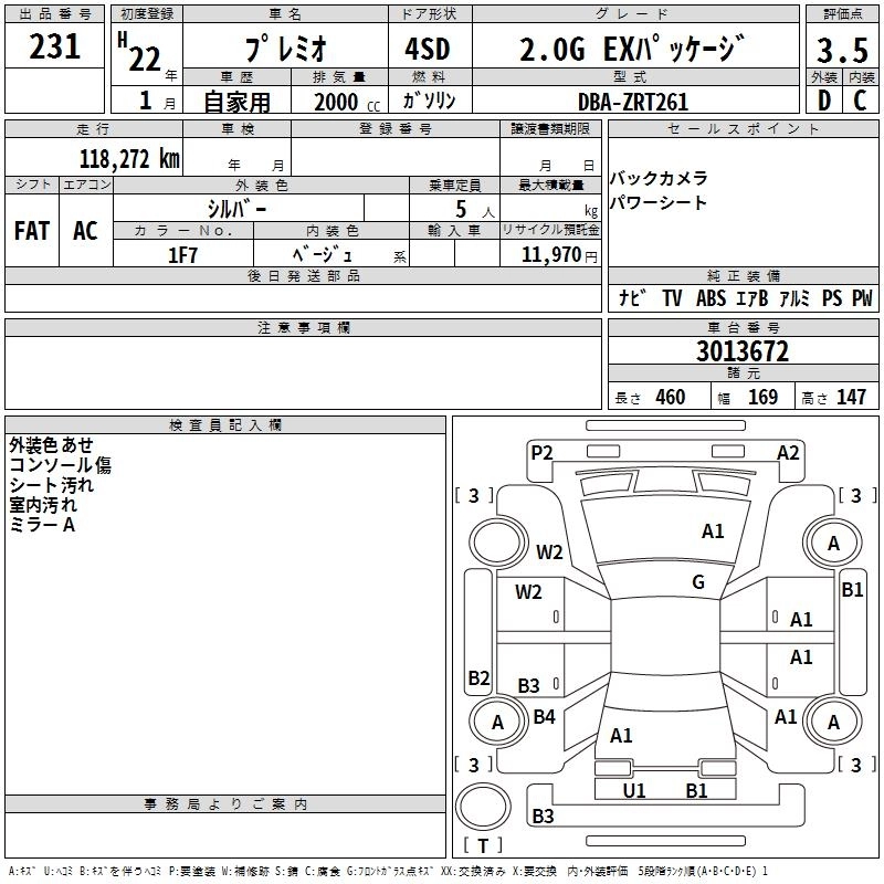 Комплектации для TOYOTA PREMIO