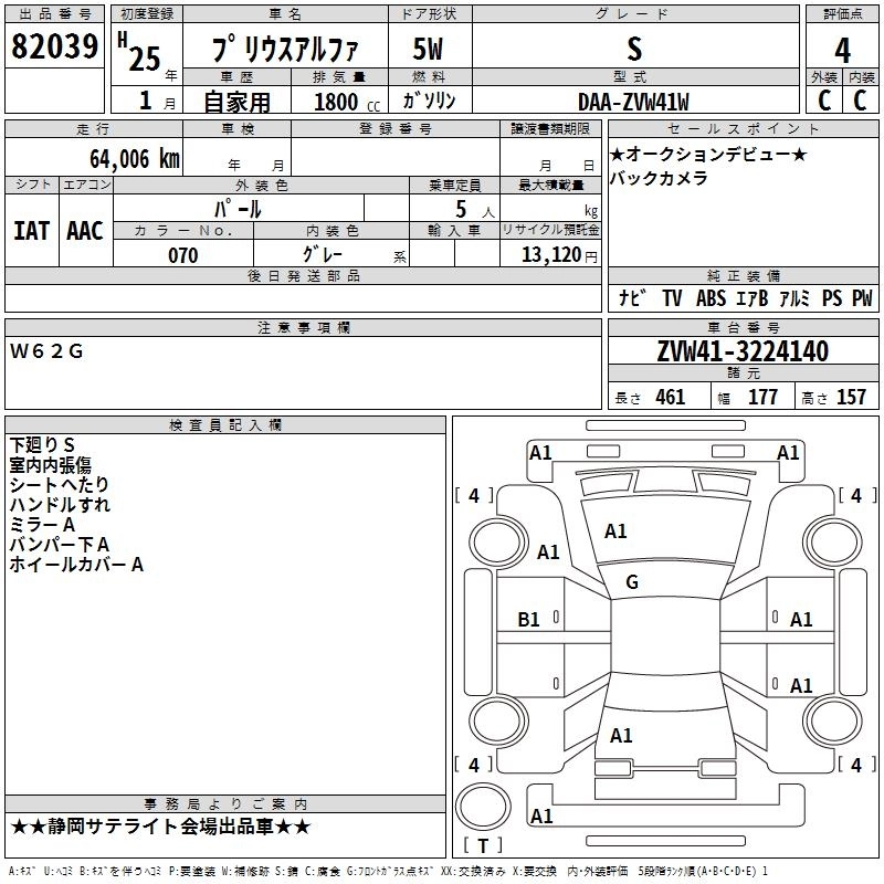 TOYOTA PRIUS ALPHA 2013 г., лот № 82039