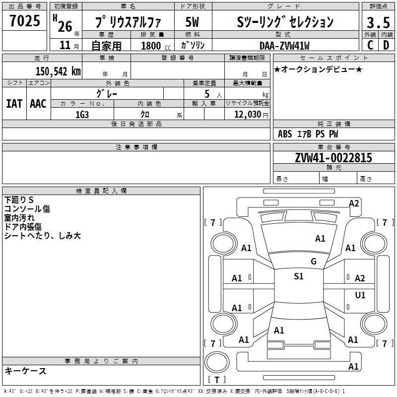| G | DAA-ZVW41W | 2ZR-FXE | FF | CVT | 1797cc | 99ps(73kW)/5200rpm | AИ-92 | 2 972 945 | |