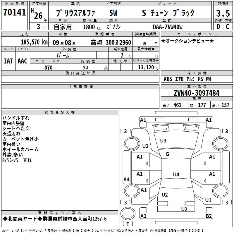 TOYOTA PRIUS ALPHA 2014 г., лот № 70141