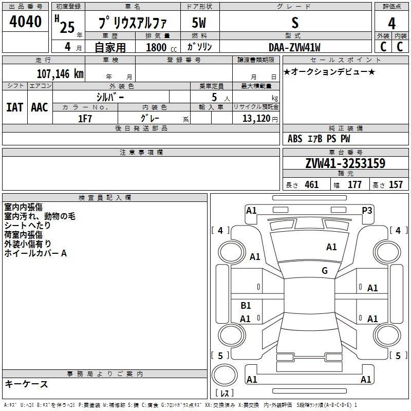 TOYOTA PRIUS ALPHA 2013 г., лот № 4040