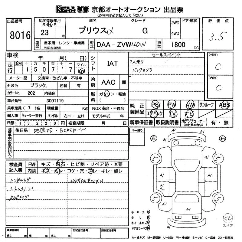 | G | DAA-ZVW40W | 2ZR-FXE | FF | CVT | 1797cc | 99ps(73kW)/5200rpm | AИ-92 | 3 000 000 | |