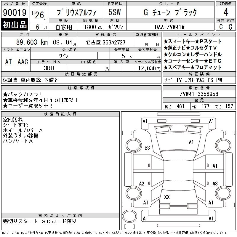 | G | DAA-ZVW41W | 2ZR-FXE | FF | CVT | 1797cc | 99ps(73kW)/5200rpm | AИ-92 | 2 880 000 | |