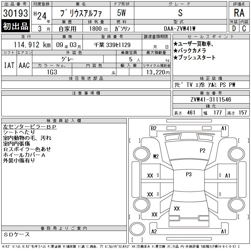 | S | DAA-ZVW40W | 2ZR-FXE | FF | CVT | 1797cc | 99ps(73kW)/5200rpm | AИ-92 | 2 700 000 |