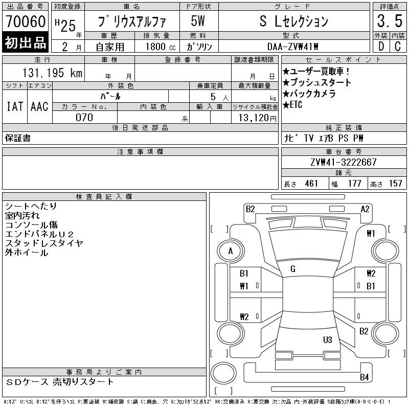 | S L SELECTION | DAA-ZVW41W | 2ZR-FXE | FF | CVT | 1797cc | 99ps(73kW)/5200rpm | AИ-92 | 2 350 000 |