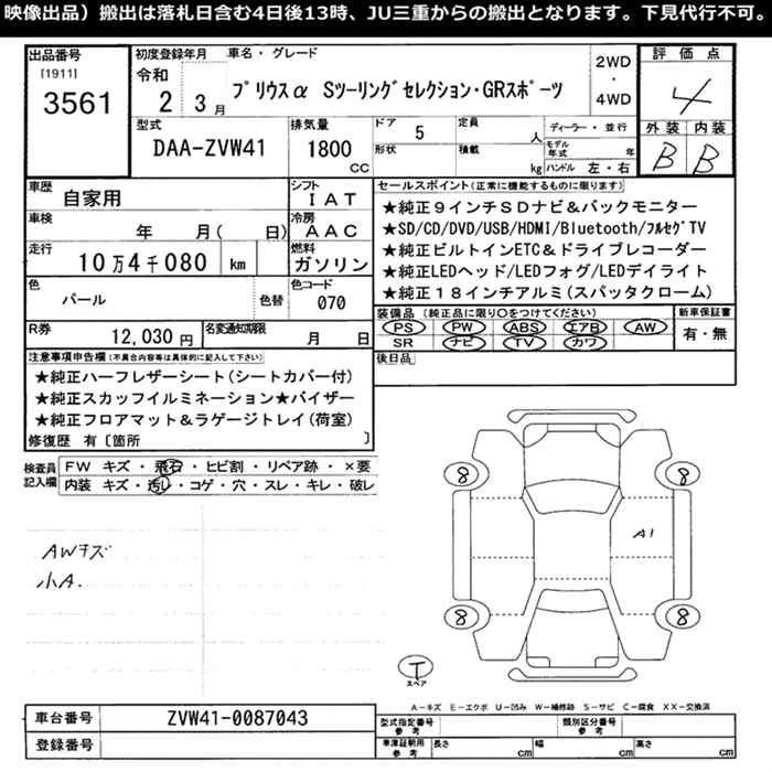 TOYOTA PRIUS ALPHA 2020 г., лот № 3561
