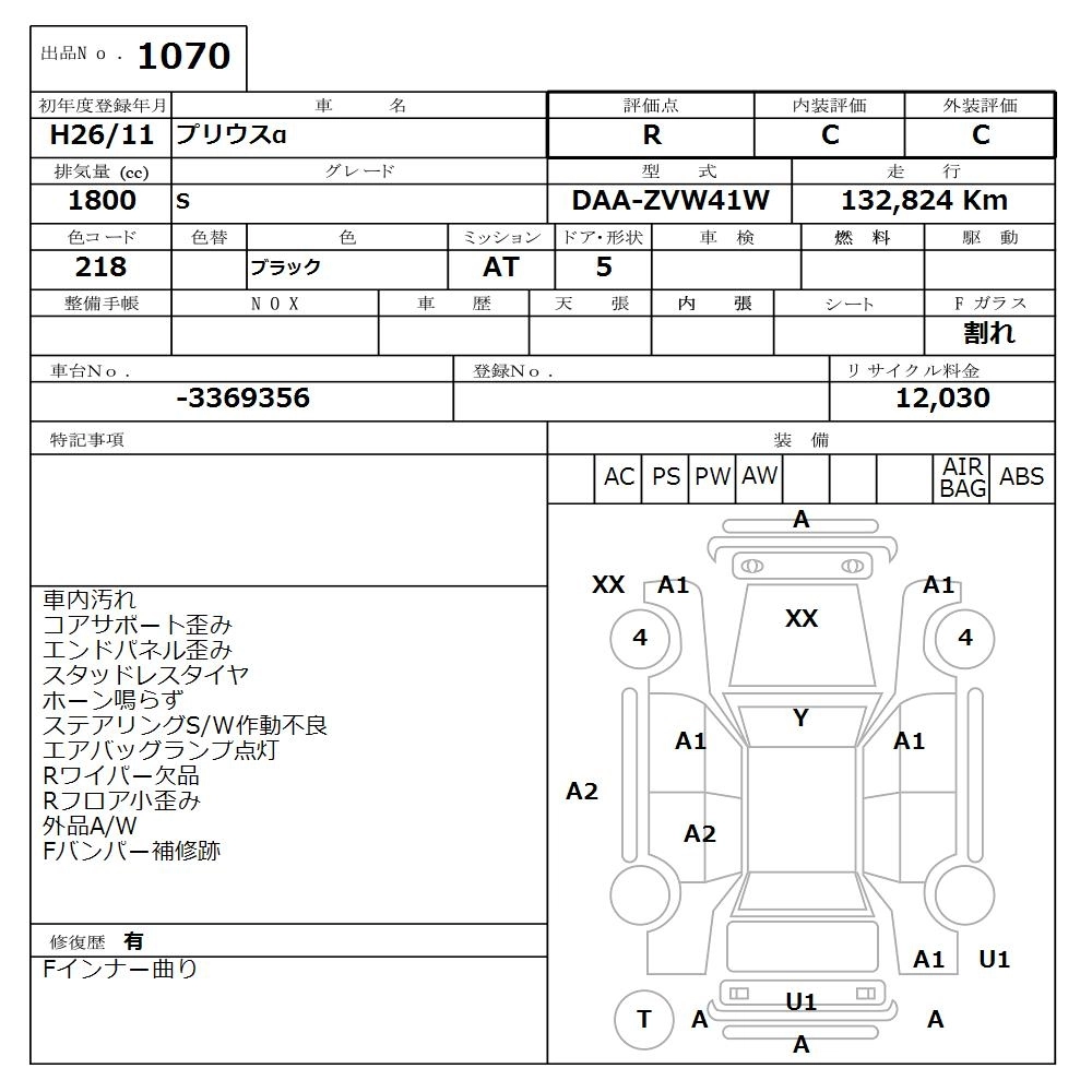RXВосстановленная трещина на ветровом стекле (требует замены)