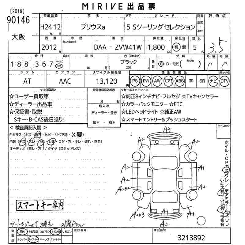 Год выпуска2012 Пробег 188 000 км КузовZVW41W КомплектацияS TOURING SELECTION