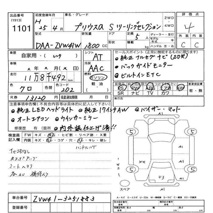 | S TUNE BLACK | DAA-ZVW41W | 2ZR-FXE | FF | CVT | 1797cc | 99ps(73kW)/5200rpm | AИ-92 | 2 530 000 | |
