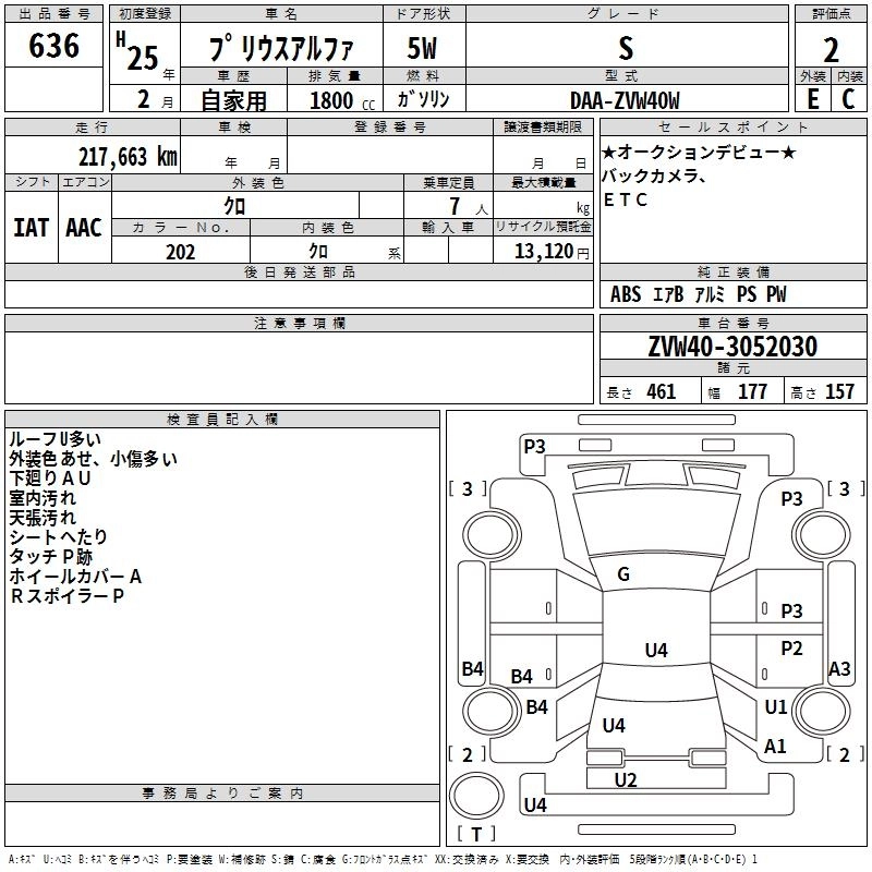 TOYOTA PRIUS ALPHA 2013 г., лот № 636