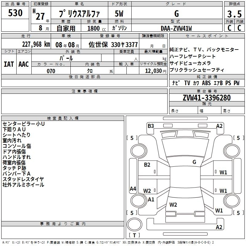 TOYOTA PRIUS ALPHA 2015 г., лот № 530