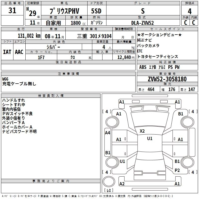 | S NAVI PACKAGE | DLA-ZVW52 | 2ZR-FXE | FF | CVT | 1797cc | 98ps(72kW)/5200rpm | AИ-92 | 3 666 600 | |