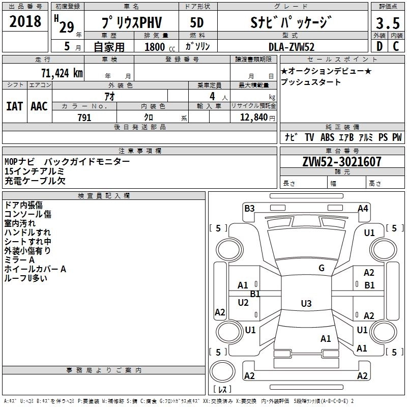 | A PREMIUM | DLA-ZVW52 | 2ZR-FXE | FF | CVT | 1797cc | 98ps(72kW)/5200rpm | AИ-92 | 4 222 800 | |