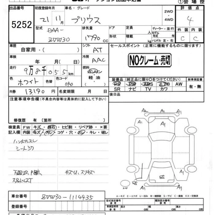 | L | DAA-ZVW30 | 2ZR-FXE | FF | CVT | 1797cc | 99ps(73kW)/5200rpm | AИ-92 | 2 050 000 |