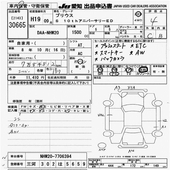 | S 10TH ANNIVERSARY EDITION | DAA-NHW20 | 1NZ-FXE | FF | CVT | 1496cc | 76ps(56kW)/5000rpm | AИ-92 | 2 730 000 |