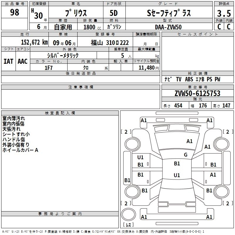 S DAA-ZVW51 2ZR-FXE FF CVT 1797cc 98ps(72kW)/5200rpm AИ-92 2 565 000