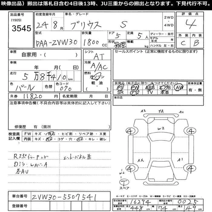 L DAA-ZVW30 2ZR-FXE FF CVT 1797cc 99ps(73kW)/5200rpm AИ-92 2 170 000