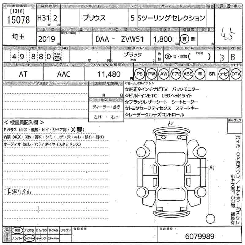 | A PREMIUM | DAA-ZVW51 | 2ZR-FXE | FF | CVT | 1797cc | 98ps(72kW)/5200rpm | AИ-92 | 3 234 000 | |
