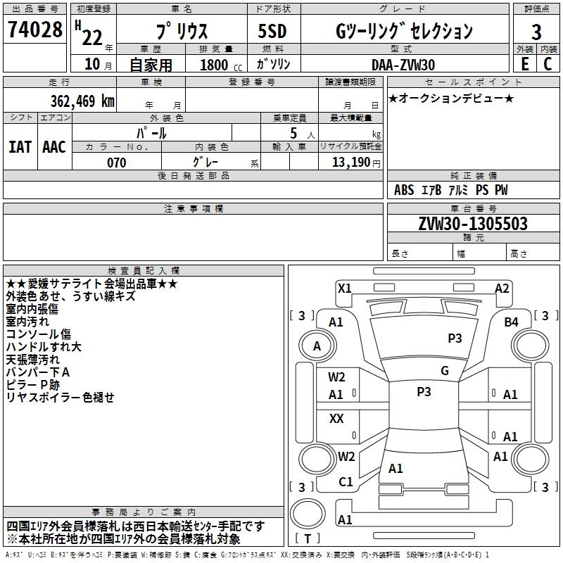 Статус выставлен на аукцион Лот 74028 Аукцион TAA Shikoku Дата аукциона 03.02.2026