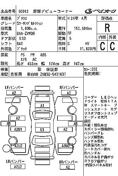 | G | DAA-ZVW30 | 2ZR-FXE | FF | CVT | 1797cc | 99ps(73kW)/5200rpm | AИ-92 | 2 520 000 | |