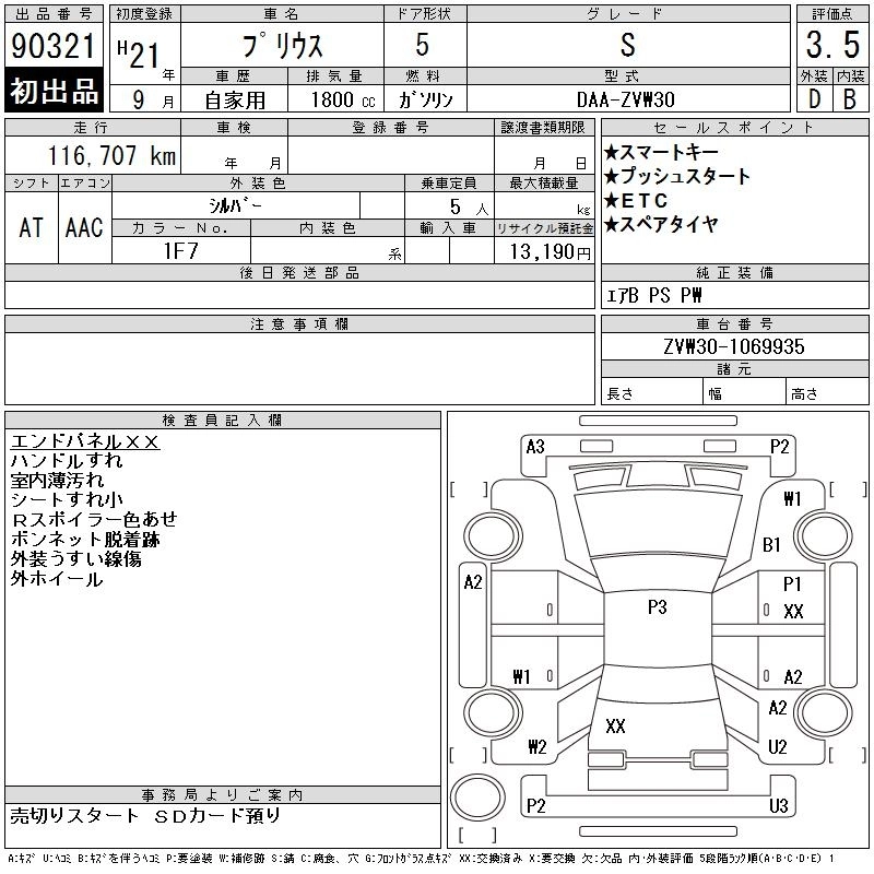 | S TOURING SELECTION | DAA-ZVW30 | 2ZR-FXE | FF | CVT | 1797cc | 99ps(73kW)/5200rpm | AИ-92 | 2 450 000 | |