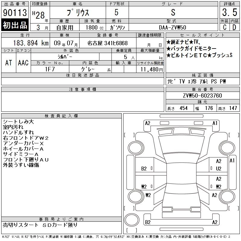 | S SAFETY PLUS | DAA-ZVW50 | 2ZR-FXE | FF | CVT | 1797cc | 98ps(72kW)/5200rpm | AИ-92 | 2 693 520 |