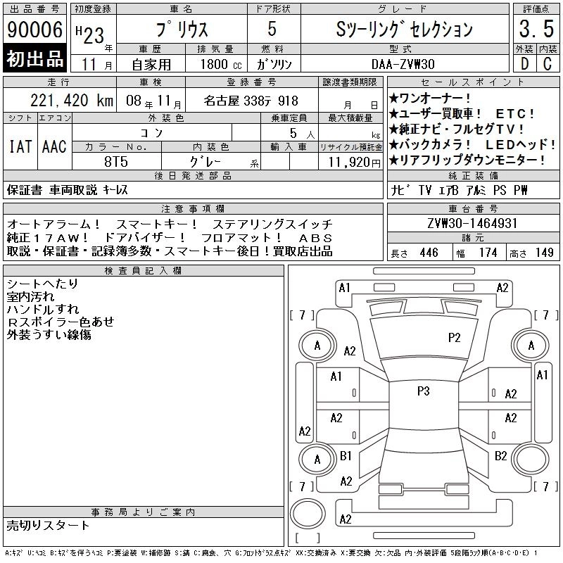 | G LED EDITION | DAA-ZVW30 | 2ZR-FXE | FF | CVT | 1797cc | 99ps(73kW)/5200rpm | AИ-92 | 2 760 000 | |