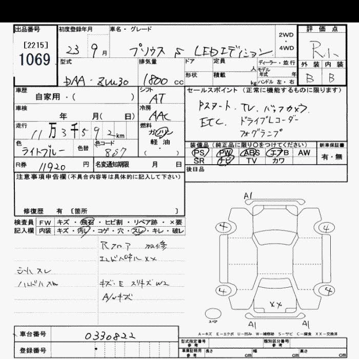 | G | DAA-ZVW30 | 2ZR-FXE | FF | CVT | 1797cc | 99ps(73kW)/5200rpm | AИ-92 | 2 520 000 | |