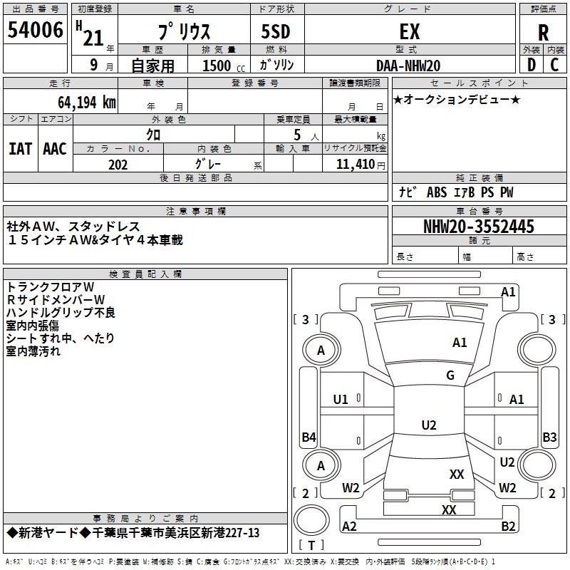 | EX | DAA-NHW20 | 1NZ-FXE | FF | CVT | 1496cc | 76ps(56kW)/5000rpm | AИ-92 | 1 890 000 |