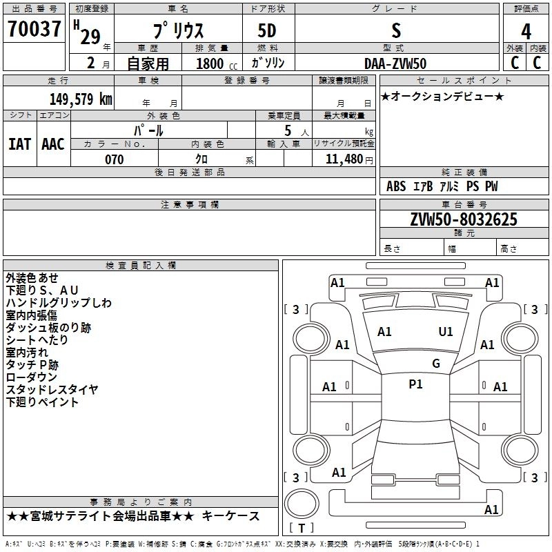TOYOTA PRIUS 2017 г., лот № 70037