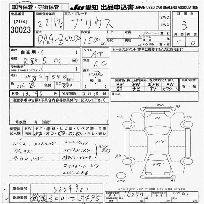 S LED EDITION DAA-ZVW30 2ZR-FXE FF CVT 1797cc 99ps(73kW)/5200rpm AИ-92 2 360 000
