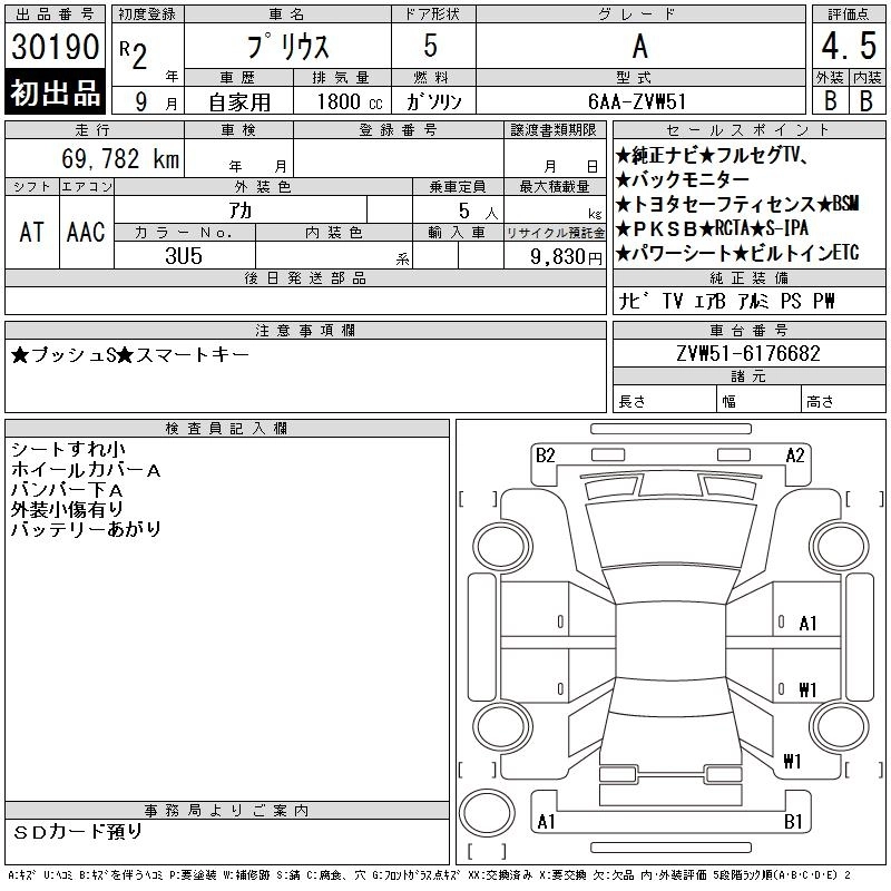 | A PREMIUM TOURING SELECTION | 6AA-ZVW51 | 2ZR-FXE | FF | CVT | 1797cc | 98ps(72kW)/5200rpm | AИ-92 | 3 359 000 | |
