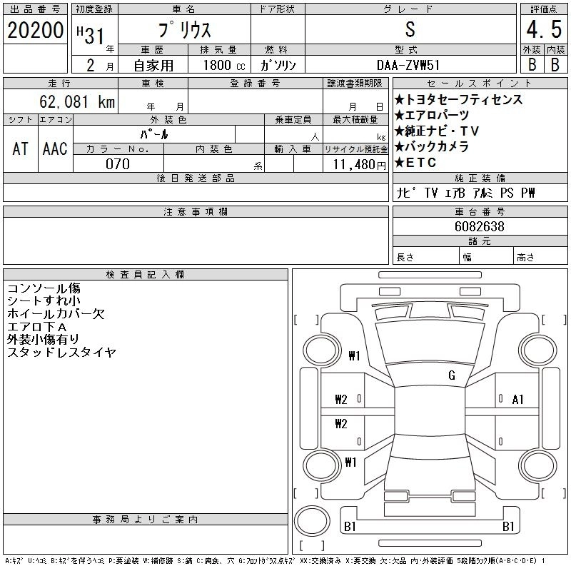 | A PREMIUM | DAA-ZVW51 | 2ZR-FXE | FF | CVT | 1797cc | 98ps(72kW)/5200rpm | AИ-92 | 3 234 000 | |