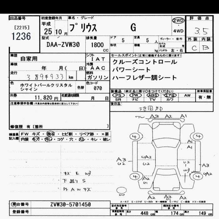 TOYOTA PRIUS 2013 г., лот № 1236
